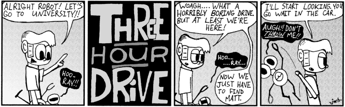 Most importantly, I can't honestly say all of this is good. Such is the catch 22 of webcomics — the pool may be a hundred kilometres wide, but it's only a few millimetres deep. It was a wonderful learning experience, especially in the early-ish days before webcomics really took hold, and I hope you had as much fun back then as I did. After all, it's a good thing it was fun then, because these strips sure are embarassing to look back on now.