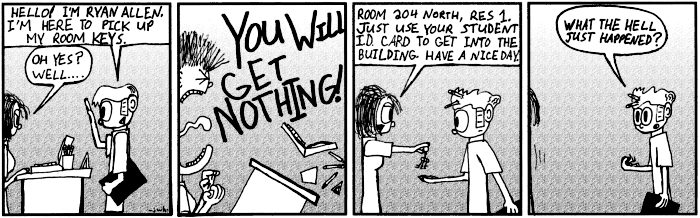 Because it's all a part of my development as a cartoonist (a process that never ends, I might add), I'm putting the entire run of Inside Joke / Inside Joke University (or at least all the strips I still have digital copies of) here, back on the free website where I spent most of my early cartooning years. The site is even a modified version of the final iteration of my old Keenspace site, because nostalgia is awesome. I apologize for any gaps in the archive (especially near the end), but this is a pretty good representation of my work throughout university, and a little bit after.