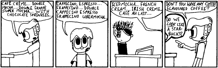 Most importantly, I can't honestly say all of this is good. Such is the catch 22 of webcomics — the pool may be a hundred kilometres wide, but it's only a few millimetres deep. It was a wonderful learning experience, especially in the early-ish days before webcomics really took hold, and I hope you had as much fun back then as I did. After all, it's a good thing it was fun then, because these strips sure are embarassing to look back on now.