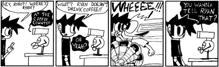 Most importantly, I can't honestly say all of this is good. Such is the catch 22 of webcomics — the pool may be a hundred kilometres wide, but it's only a few millimetres deep. It was a wonderful learning experience, especially in the early-ish days before webcomics really took hold, and I hope you had as much fun back then as I did. After all, it's a good thing it was fun then, because these strips sure are embarassing to look back on now.