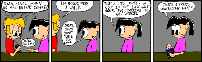 Most importantly, I can't honestly say all of this is good. Such is the catch 22 of webcomics — the pool may be a hundred kilometres wide, but it's only a few millimetres deep. It was a wonderful learning experience, especially in the early-ish days before webcomics really took hold, and I hope you had as much fun back then as I did. After all, it's a good thing it was fun then, because these strips sure are embarassing to look back on now.