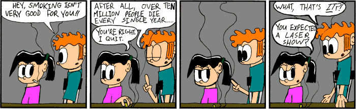 Most importantly, I can't honestly say all of this is good. Such is the catch 22 of webcomics — the pool may be a hundred kilometres wide, but it's only a few millimetres deep. It was a wonderful learning experience, especially in the early-ish days before webcomics really took hold, and I hope you had as much fun back then as I did. After all, it's a good thing it was fun then, because these strips sure are embarassing to look back on now.